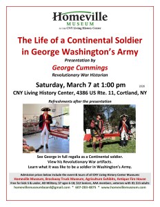 March 7, 1:00 pm – George Cummings, “The Life of a Continental Soldier in George Washington’s Army”