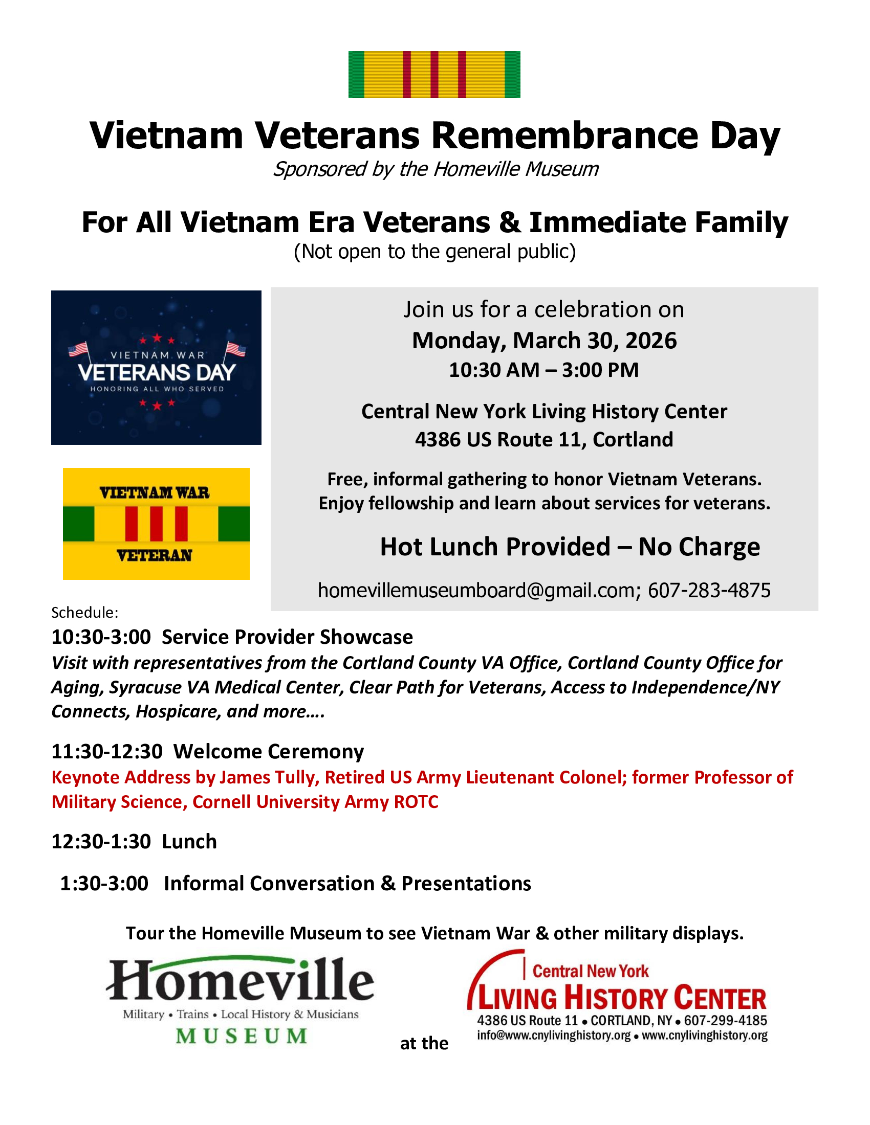 March 30, 10:30 am-3:00 pm: Vietnam Veterans Remembrance Day