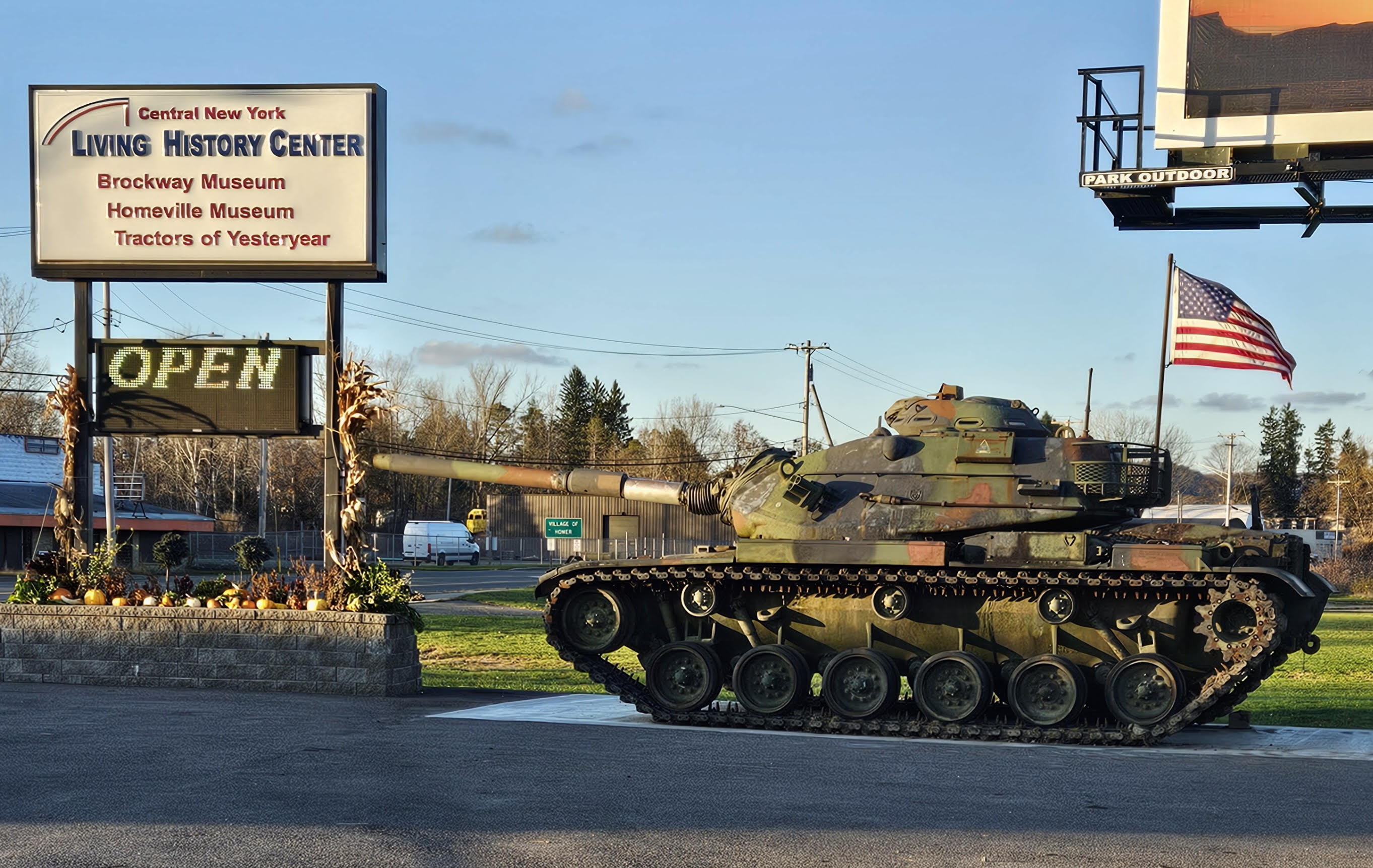 A new concrete pad supports our WWII Tank